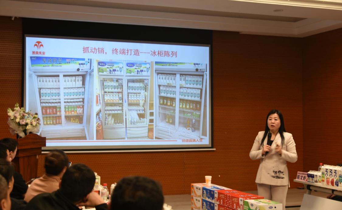 分享会伊始,保定美森乳业销售经理常总发表致辞。她首先对繁峙区域经销商长期以来的支持与付出表示衷心感谢,强调 “经销商是品牌与消费者之间的桥梁,是市场开拓的核心力量”。常总结合当前乳制品行业消费升级、渠道变革的新形势,解读了美森乳业的年度战略规划:“未来我们将持续加大产品研发投入,核心品类创新,同时优化供应链体系,提升物流配送效率,为经销商提供更具竞争力的产品支持与运营保障。” 针对繁峙区域市场特点,常总提出 “精准布局、深耕终端” 的发展思路,鼓励经销商加强线下网点渗透、借助社群营销扩大品牌影响力,实现厂商协同共赢,同时,常总围绕 “终端动销提升” 主题展开分享,通过真实案例拆解、数据对比分析,从产品陈列技巧、促销活动策划、客户关系维护等方面提供实操指导。